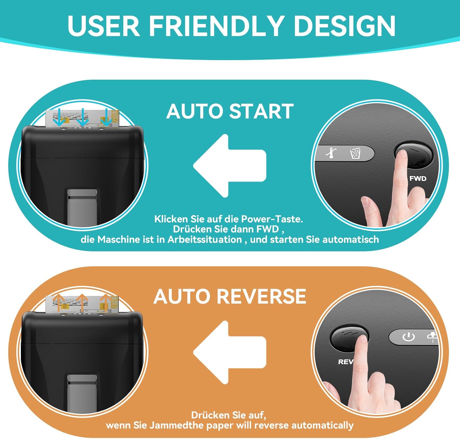 15 minutes Non-Stop Shedding,overload operation of the Home shredder machine will Auto start overheating protection with 45 munites cooling time.
