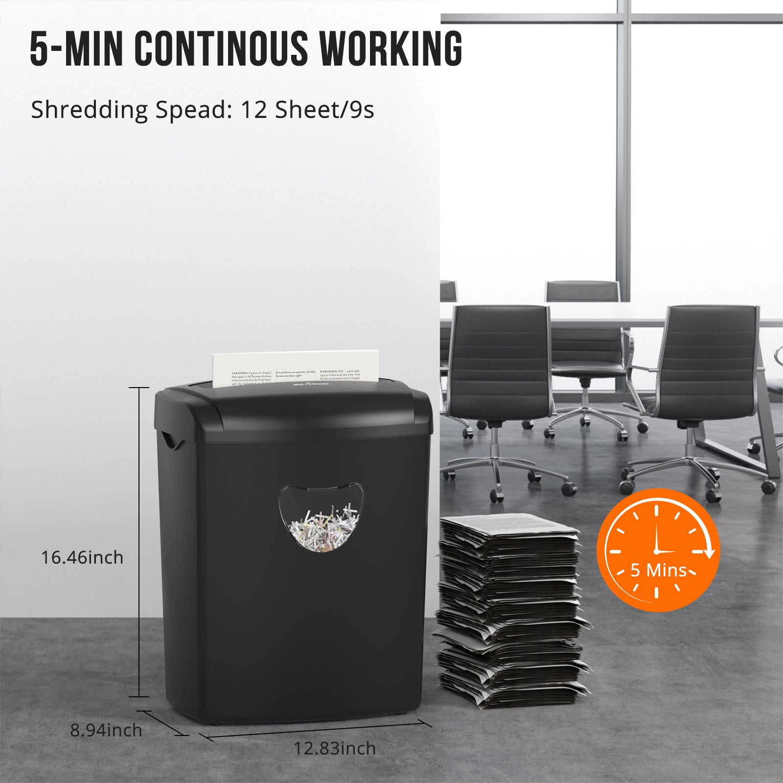 High-Capacity Design:12-sheet capacity handles 320 pages before emptying (5.5gal/21L bin). See-through window eliminates guesswork.